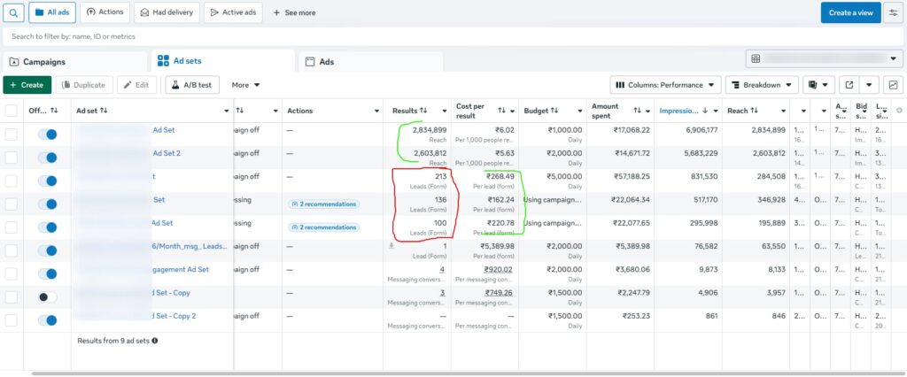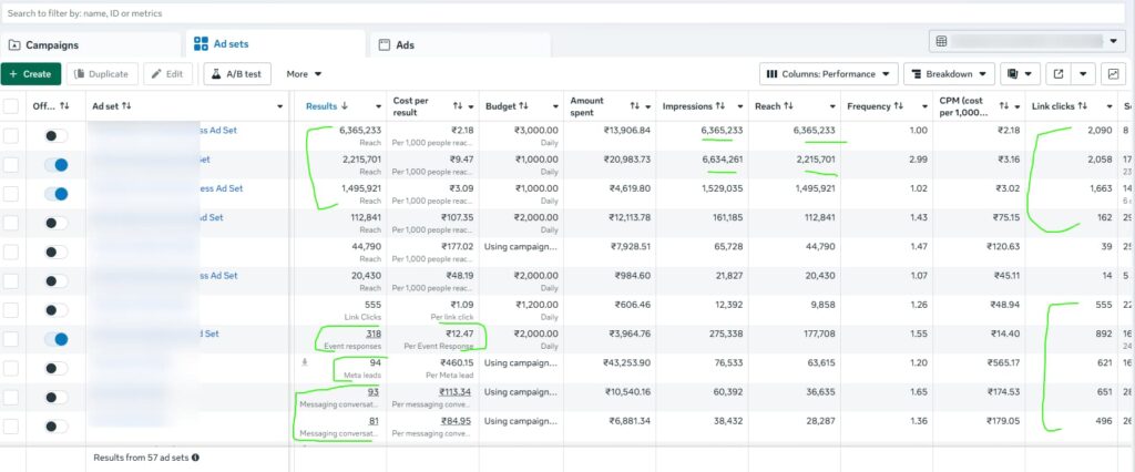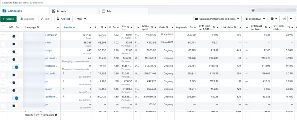 Recent Facebook ads Campaign Results